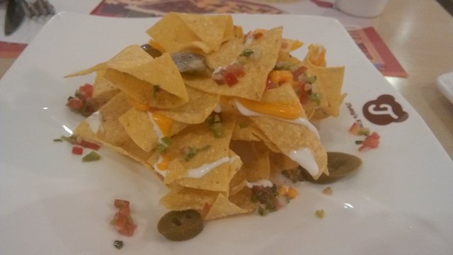 辣椒芝士玉米片,在墨西哥好像叫纳秋斯吧,和塔可的感觉差不多,因为都是一样的玉米片、辣椒和酱,所以大家去吃的时候选一种就好了,我更推荐牛肉塔可。