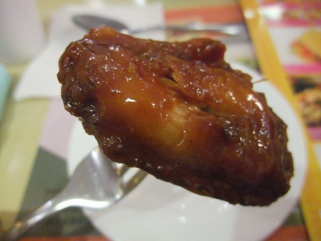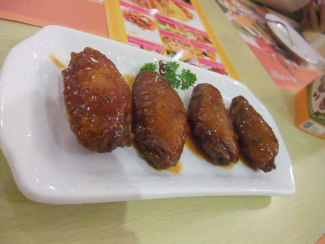 水牛城鸡翅,个人还比较喜欢,名字听上去很有特色,不过味道还是比较接近我们的口味的,口感略有甜味,比较入味,鸡翅口感很嫩,上色也比较好。