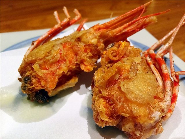 牡丹虾有三个档次,50,70,90~我没有选择最贵的,因为我记得分档次完全是因为大小的关系,我只是想尝一下鲜甜度,所以没选择最大的,70的个头也非常大了,而且牡丹虾头会免费为你做炸虾头或味噌汤。