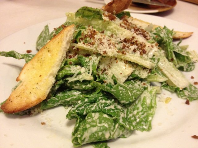 【凯撒沙拉】凯撒是点的比较多的沙拉,同学非要再点一份,说是减肥~里面的蔬菜种类比较多,生菜很脆脆,好吃,甜甜的,还有酸橄榄。