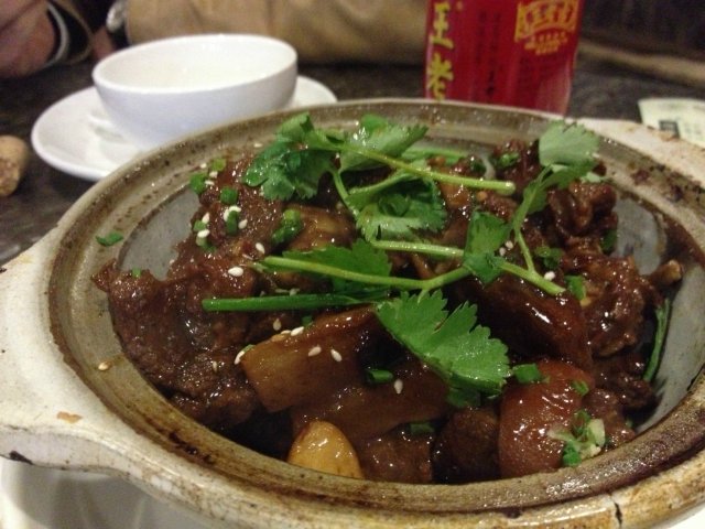 【红烧羊肉煲】分量也是不大,羊肉块数不多,而且骨头也不少,亮点是里面的白萝卜,没有一点苦味儿,筋也很少,羊肉的鲜和红烧的酱汁味道完全渗透,带些微甜。
