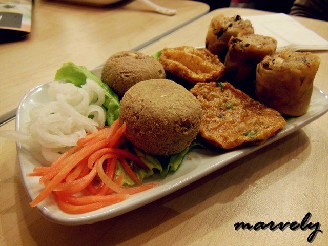 小食拼盘 marvely等级42014-04-1114 浏览 关注 越式小吃拼盘,32元 炸豆腐,鱼饼和春卷的组合,可能是这里的春卷已经有些冷了,所以吃起来,味道没有前面一盘的好吃。炸豆腐有着焦酥的外壳和柔软的内心,但是整体味道是偏淡的,缺了酱料就不好吃了。鱼饼QQ的,嫩滑的,口感好的得到我们一致的称赞,于是又单独点了一份。 以上食记乃用户个人意见 , 并不代表OpenRice之观点。赞好分享小食拼盘 Pho Kitchen越南粉 https://s.openrice.com/KtLT100dbiA00检举 张贴 评分3味道3环境3服务3卫生3抵食