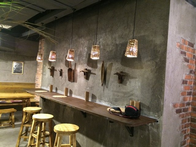 环境:店里装潢古朴中流露现代感,古旧的木门、斗笠改造的灯罩、木窗棂、泛黄的老照片、斑驳的墙壁都有带你步入山城小镇的感觉。