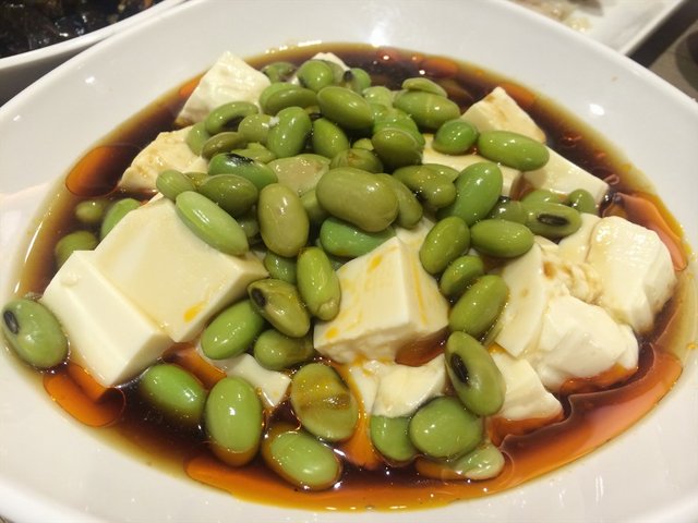 斗嘴,9.99米。好吧,事实证明菜名特别的菜都不会太好吃,红豆拌豆腐,上面撒青豆,调味不均,基本没什么咸味,也就占个青口颜色讨喜的优势了。