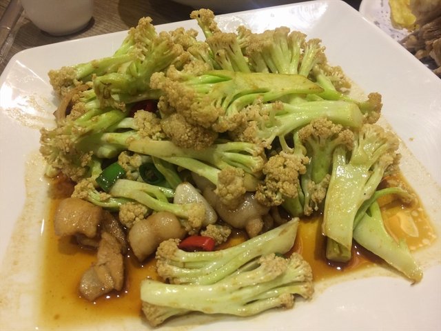 炝炒有机菜花,32.99米。小伙伴喜欢的一道,不得不说有机菜花比普通菜花要嫩好多,很爽脆,不油腻。简单的炒制之后就很入味,随便几筷子一盘子就下去了,咩嘿嘿。