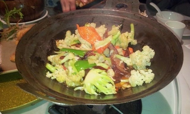 好吃的!锅仔的做法,微辣,花菜不硬也不烂,边吃边煮,边煮边入味,吃到后面更好吃,带着些许腊味,推荐!