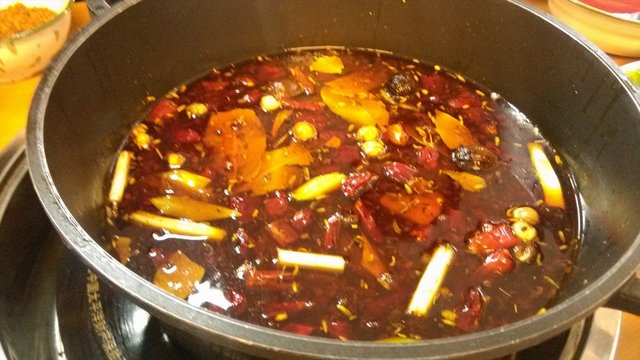 他家的辣锅我们点的微辣的,情意绵绵款25元,但是我觉得还是挺辣的,所以点这个就行。调料一共四种,我们都点了,我个人觉得还是香油的最好吃,解辣。