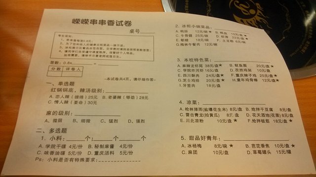 试卷上我们点了些他家特色的,香酥肉,鸡骨棒,牙签肉,芝士鸡排,虾滑,鸭肠,鲜鸭血,冰杨梅,还有依维豆奶,最后结账,四个人一共消费273元,用了两张团购券,便宜了50块钱。