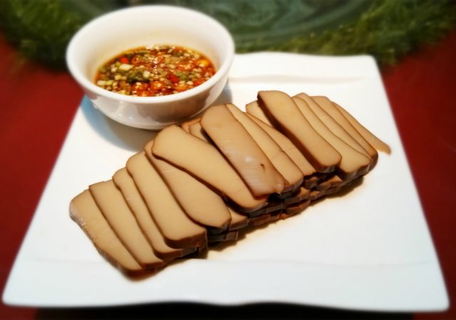 【鸡蛋干】也是我爱吃的,蘸着酱料,劲道感十足,很是美味。