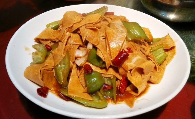 【尖椒豆腐皮】家常菜,豆腐皮是长条状,味道很足。