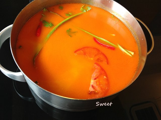 东阴功锅底明亮的橘红色看着就让人眼前一亮。