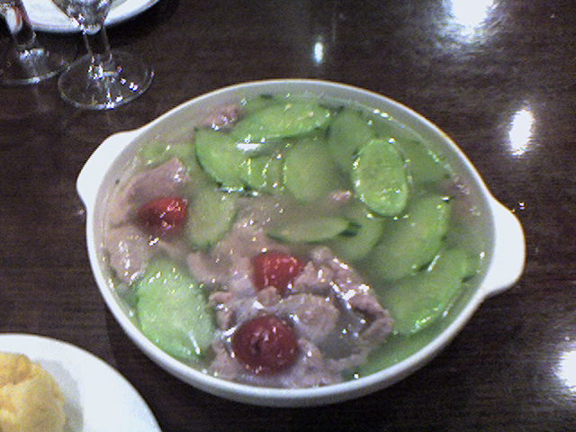 黄瓜烩牛柳,30元,应该属于汤菜,相对来说比较清淡了,不过还是能吃出一点辣味,牛柳倒是挺嫩的!