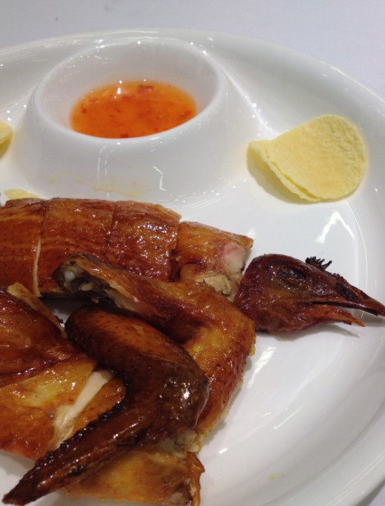 选的是小仔鸡,端上来感觉好小哦。旁边还有薯片和酸辣味道的沾碟搭配。皮油亮亮的真的好脆,肉质好嫩,怪不得是小仔鸡,到了嘴里好吃。一定要在热的时候吃,冷了真的不好吃了。
