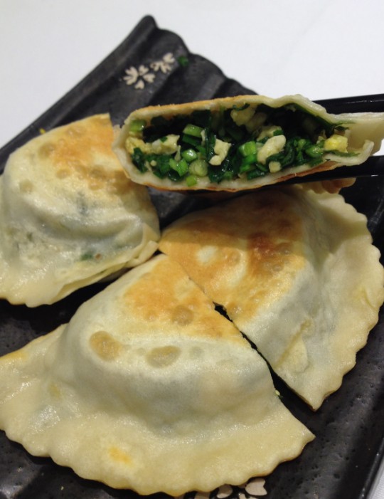 地道的北方菜,皮薄馅多,韭菜鸡蛋是越嚼越香。这是油煎的,有点油,多喝茶平衡一下。