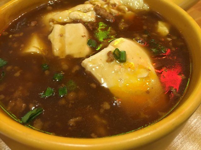 豆腐汤,拌饭蛮好的,有肉末。