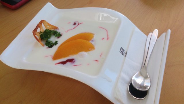 但是在上课前,要先吃一下小点心~除了咖啡,小点心也很好吃呢~芝士蛋糕都是小小的一块一块,一人一口很方便呢。喜欢那个泰囧虾片,很有小时候吃过的虾片的味道。很爱融化的蓝莓慕斯,要趁冷吃,不然放久了会化掉。烤薯角居然叫“肥嘟嘟先生”,是在提醒减肥人士要注意不要吃太多了吗?