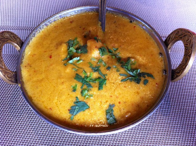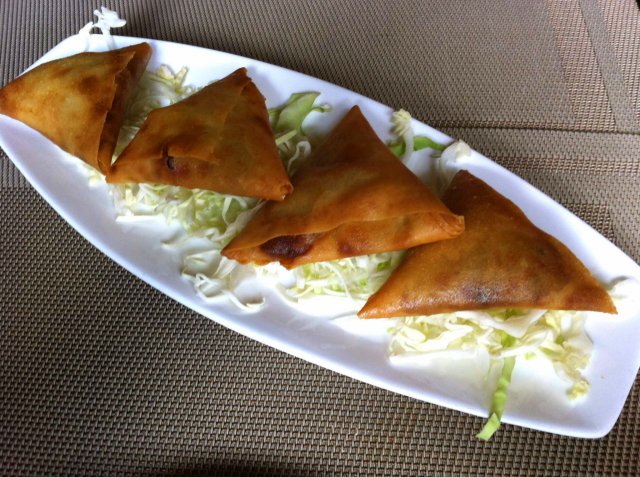 咖喱角,印度非常有名的小吃,馅料不同,有四五种可选,特意选了最贵的海鲜。刚做好的外皮酥酥脆脆,里面的馅料是咖喱调制的,没有吃出海鲜的感觉,味道还不错,油炸滴热量不低,好在小小的,吃着没过多负担