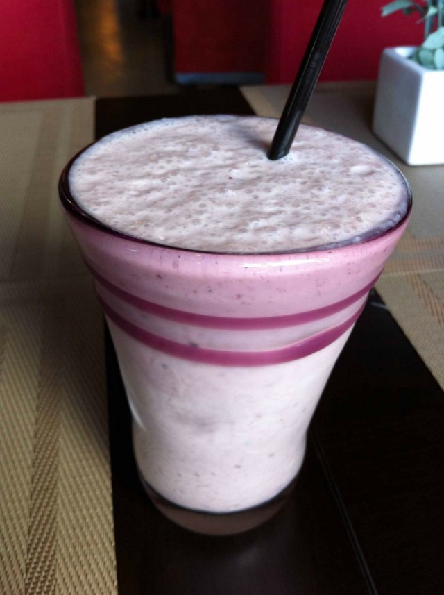 淡紫色,满满的一大杯,酸酸甜甜的,味道非常好,这一餐肚子撑饱基本都靠它了