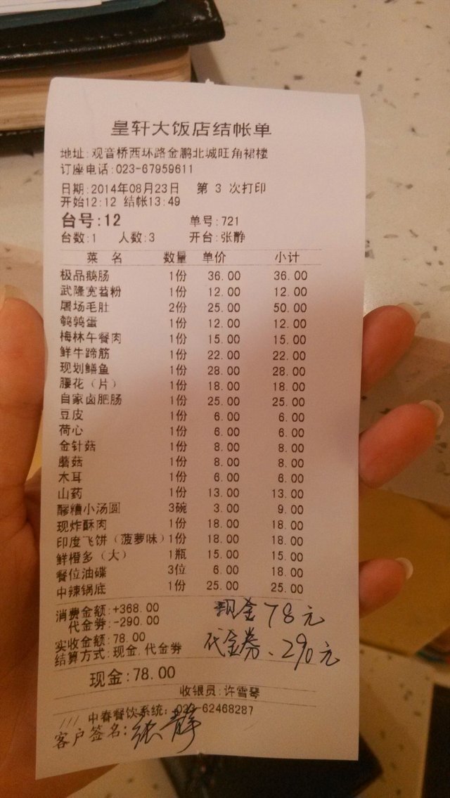 感觉管理灰常松散,一会儿这个服务员结账
