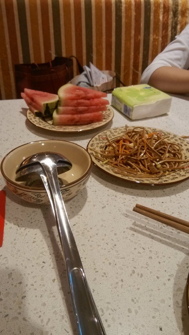 餐前端上来的西瓜是有味道的(请大家自行脑补 继【H平面】的大蒜味西瓜后的又一神作 想看的孩纸请看我另一个商家的点评)
