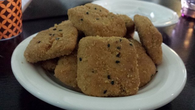 味道出奇难吃,就是街边那种小蛋糕出品的,几块钱一斤的普通桃酥。