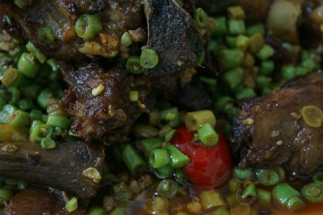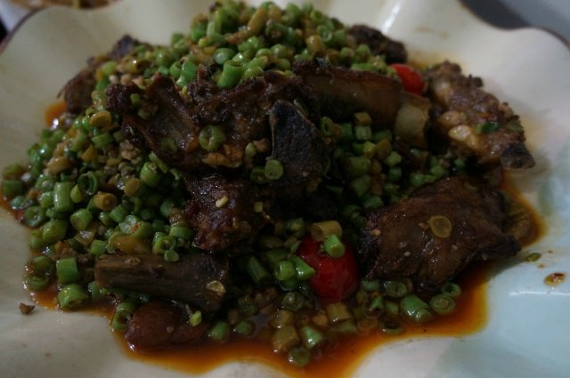 【奇香排骨】没有我想象的好吃,下面是泡豇豆和嫩豇豆的组合,我总觉得炒嫩豇豆有点豆腥味。排骨很大一块,但是太干了,没有什么奇香的感觉。这道菜个人不是很喜欢。
