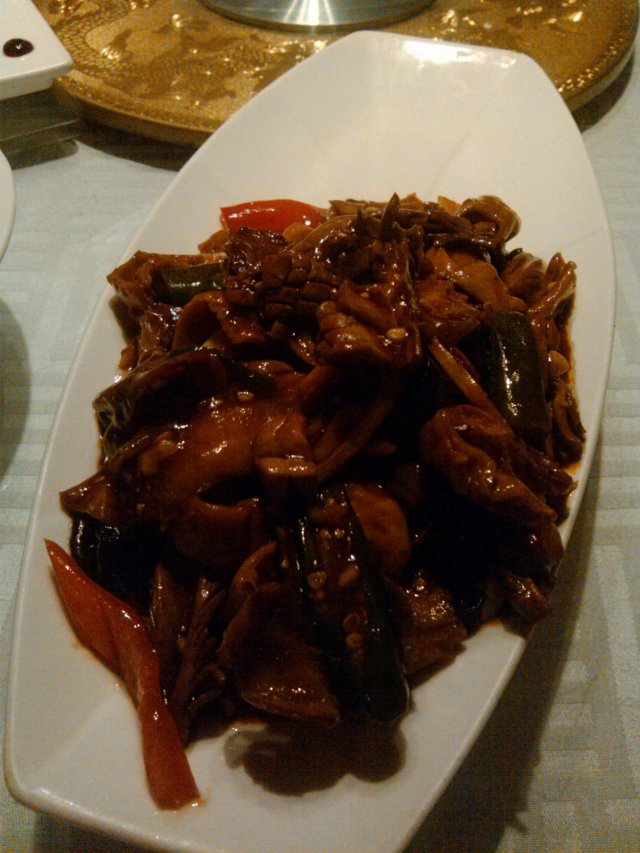 同事非要吃秋葵,于是点了爆三样,因为配菜是秋葵,咸了,味道还行。