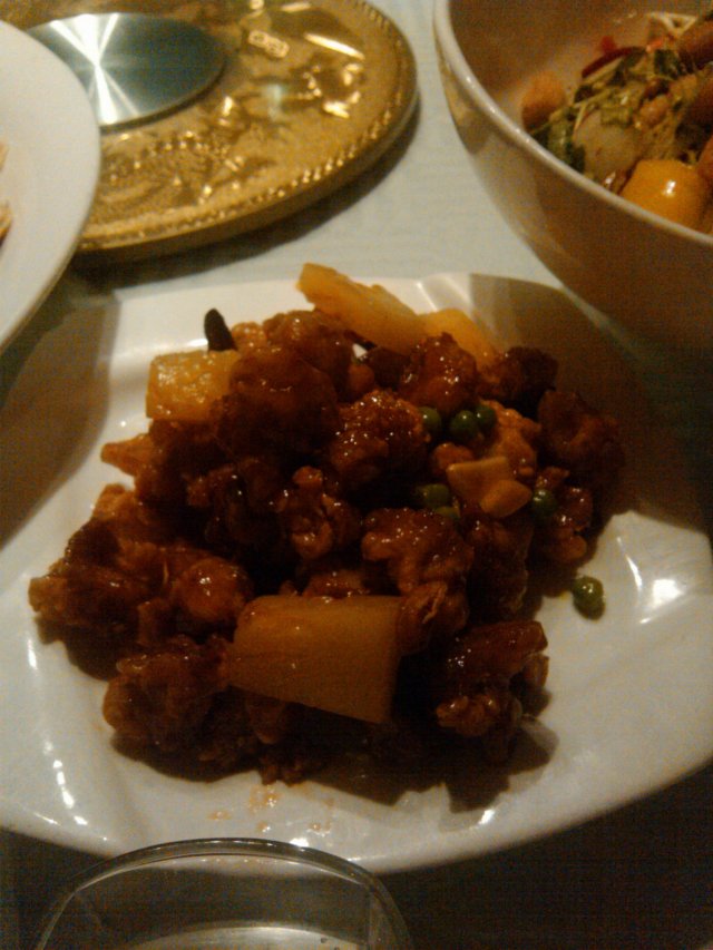 桃仁鸡卖相不好,都成糊了,有点类似糖醋里脊的味道,一般。