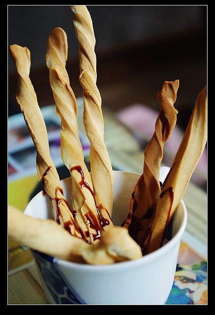 淋了少许巧克力酱的手工饼干