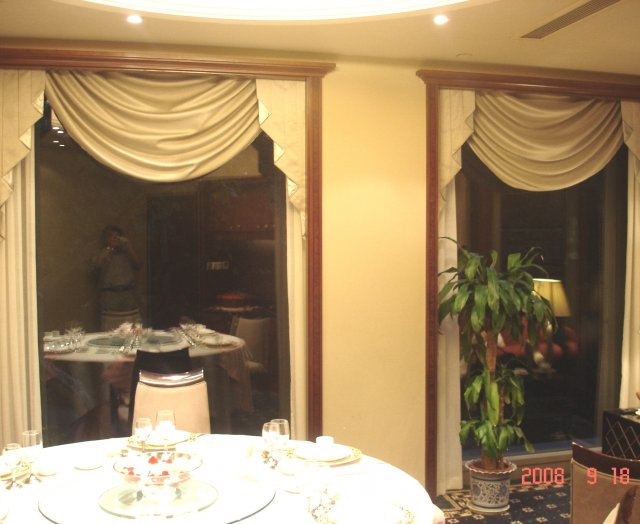 二楼包房有3个落地窗,看出去是草地和 稀疏的树枝, 室内布置豪华协调,欧式品位,是否宫廷式不知道