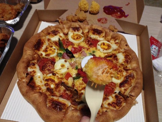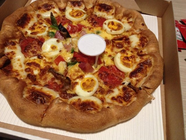 必胜客 gotoasami等级42014-10-2018 浏览 关注 /交通/ 公交43路,685路,684路花市路口南下车。地铁2号线,5号线崇文门下车。 /环境/ 地方还算大,1层和地下两层,环境比较一般,尤其是卫生间特别脏,上菜速度也非常的慢。 /价钱/ 人均消费80左右。 /味道/ 新出了一款蛋香满溢披萨,就冲着新鲜劲点的,但比较失望,鸡蛋一点都不香,就整块放在上面了,培根给的还挺实在的,肉很香,饼皮比较厚,里面有芝士夹心还挺喜欢的,很喜欢吃芝士的东西,披萨整体来讲一般吧,味道也是中规中矩,就着点番茄酱吃不太会腻,如果单吃比较腻。以上食记乃用户个人意见 , 并不代表OpenRice之观点。赞好分享必胜客 必胜客欢乐餐厅 https://s.openrice.com/KtLT1m0xF4C00检举 张贴 评分3味道2环境3服务3卫生3抵食用餐途径堂食