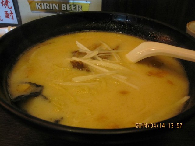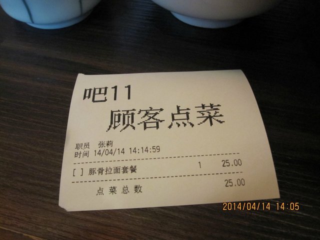 #午市套餐# 口碑很好的一家店。在西康路这条小马路上面。门面就在阿美的旁边,看起来是那种居酒屋风格的屋子。 下午近2点的时候进去,客人还是很多呢的。服务生看我进门就把我引到了靠最里面的一个墙角的位置(可怜啊,面壁思过式的吃午饭,还是最最小的一个角隅) 直接给了lunch set的菜单,都是日文的,但是个别会在下面注明中文。我看到dp介绍说拉面比较好吃,就问,有没有拉面套餐。服务生很凶的说,有的呀。就是这个呀(指着一串日文字,但是不明白唯独拉面的这四种没有用中午标注说明,你们不对应中文菜单还气势汹汹了啊?)我说,那么拉面套餐里面到底有些什么呢?她说,就四种拉面啊。不是说了啊。我反问:套餐里就只有一碗拉面?只有一碗拉面叫什么套餐?她才总算明白我问的意图,说:2个小菜,一小份炒饭,一份面。你看说话吃力伐。还这样的态度 等了大概七八分钟,上了2个小菜,一个是豆干,带有香菜碎末,很香,应该是外面超市里卖的那种切成小片。味道不错。还有个小菜是切丝的酱菜,里面竟然还有一块肉!蛮大的哦。很爽口,酸酸辣辣的 炒饭小小份,味道普通。类似酱油和蛋炒饭那样。没有特别的味道。不出彩 我要的豚骨拉面量很足,超级足的哦。里面有四块肉,2块是半筋半肥的,软糯可口,很香。还有2块是精肉,就有点老。更偏爱肥瘦相间的肉。蛋是切开的一个。半流黄的蛋黄相当诱人。汤头很鲜美。又不是那种调料冲出来的鲜。吃后不口干。面条的量很足。男生肯定也会觉得饱 这样一个小套餐25元,实在是性价比高 他们家的拉面好几种,下次可以再试试看其他的 刚刚上菜的时候小姐就催着买单了 有免费的茶水供应,不过服务实在欠缺了些。店内信号很差劲
