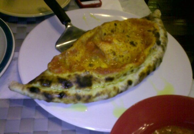 【盒子披萨】68米 12寸的pizza 样子像个巨大的饺子 内料有火腿 蘑菇 芝士 可能上次吃的