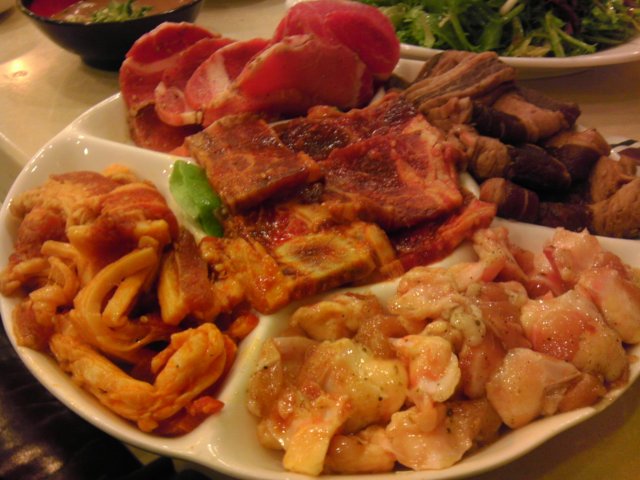 菜量非常大,培根还有五花肉真的是满满一盘子啊