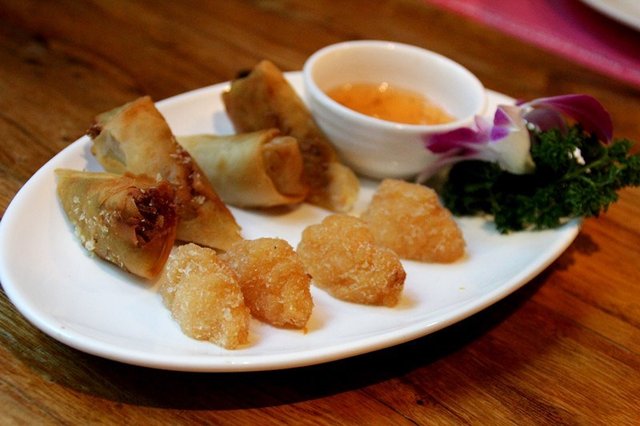 虾饼很好吃,韧韧的有嚼劲,椰汁西米糕里的椰汁太少,西米太多了。