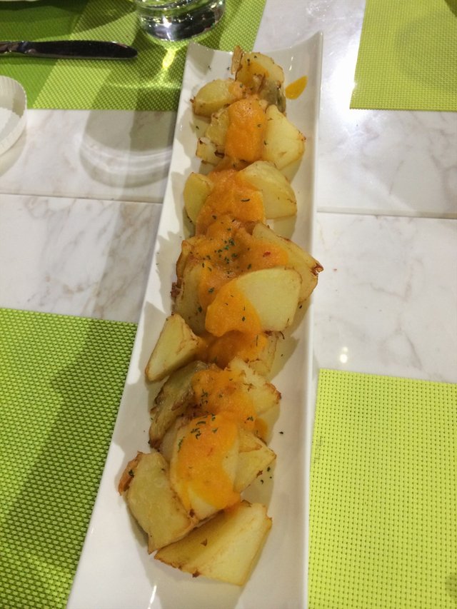 以上3个小吃基本都以土豆为原材料做的小吃,看来西班牙人民很爱土豆啊。个人觉得西班牙土豆蛋饼还不错,三角形的外形,搭配着自制的酱料。