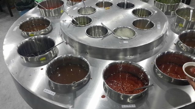 作为汕头人,走到哪都会想念家乡的食物,让家乡那熟悉的味道追随到了深圳。汕头人对牛肉火锅的热爱,对其搭配的吃法有着独到的见解,这不海记从汕头开到深圳第九家分店,还是深受众多食客的欢迎。其实之前的分店早已耳闻,天天排长龙,千辛万苦的为了能满足吃上一餐正宗的潮汕牛肉火锅。摩拳擦掌久等终于在公司后面开业的第九分店,第二天中午就兴奋的跑来,居然说人手不够只开晚市,哎~第三天下班6点10分到,门口已经开始排队了,一边窗口师傅正刀不停的现切肉,另一边做牛肉丸的师傅正手执木棒捶打着牛肉丸浆。赶紧找位置坐下,一定要挑大锅炉的桌子,霸气冲天的牛肉火锅岂容你小家子气般涮小锅呢?【白萝卜清汤底】10元加点芹菜粒、炸蒜蓉提味,蘸酱就秘制沙茶酱和秘制辣椒酱够了,和牛肉的绝配,其他都显得多余(听到旁边一女生问店家怎么没有香菜,我忍不住要笑)。但我感觉沙茶酱偏甜了点,辣椒酱又觉得不够辣。