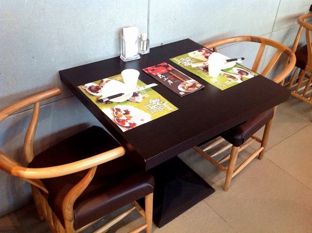 正好有桌刚收拾完.就坐在了外边.等待点餐...