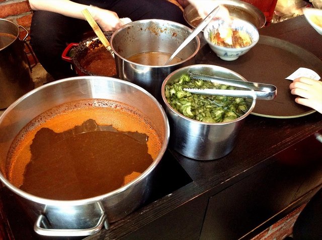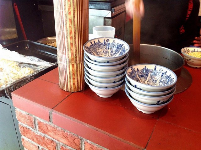 进门左手边的服务员在调配制作担子面.右边主要的就是结账.门外有不少等位地方.