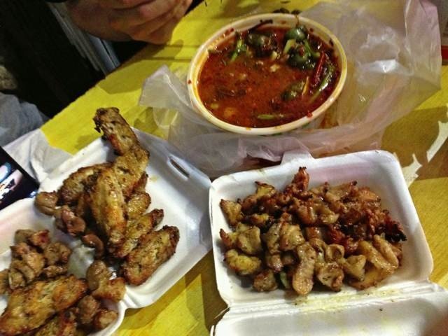 抵抗力好的可以去吃吃看 purerara等级42013-06-114 浏览 关注 上海有名的黑暗料理啊。烧烤特别出名。 一到晚上,摊头都摆出来了。老板很热情,一边忙着弄烧烤。一边热情地招呼着客人。 住在附近的居民肯定怨声载道吧。 有次晚上经过去吃了点烧烤,就当是夜宵 买了好多鸡翅膀,味道还不错。味道很地道。 想到很多年前在吴江路吃烧烤的味道。 鸡胗什么的也很好吃 晚上在路边吃大排档 也挺有意思的 不过肠胃不好的朋友别去轻易尝试哦以上食记乃用户个人意见 , 并不代表OpenRice之观点。赞好分享抵抗力好的可以去吃吃看 黑暗料理界烧烤摊 https://s.openrice.com/KtLT1005l0500检举 张贴 评分4味道2环境4服务2卫生4抵食人均消费¥30 (宵夜)