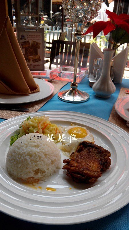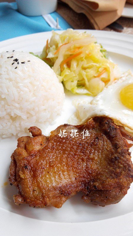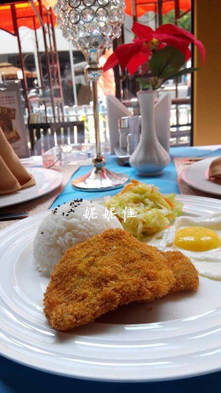 香茅猪扒饭:两小块炸猪排。猪扒有很淡的香茅草的味道,基本就是油炸味。