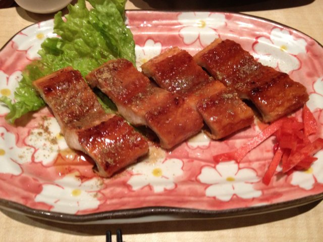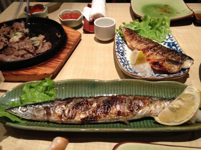 【秋刀鱼】这里的秋刀鱼很肥,肉很结实,肚子上的刺虽然还是多,但这里烤的火候恰到好处,淋些柠檬汁,一点不觉得腥,服务员会帮忙切成小段,吃起来也很是方便。