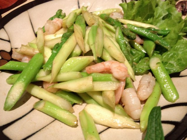 【青笋炒虾仁】点了个素菜,为了解解烤物炸物的油腻,青笋脆脆的,比较好吃,但虾仁炒得有点老了,虽然个头不小。味道也稍稍欠缺一些。