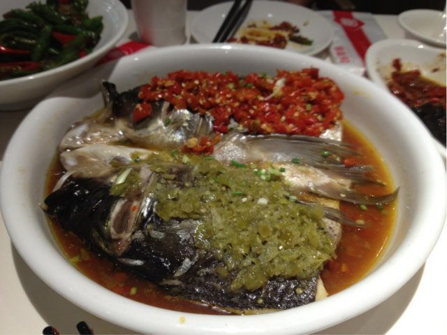 这里的很多菜都可以点半份的鱼头也一样 不过很难想象半份双椒鱼头是什么样子