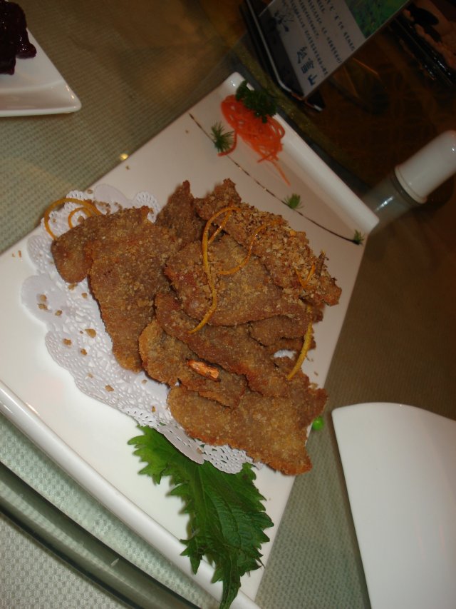 江南香酥陈皮牛肉,58元,很别致的一道菜,陈皮的味道很浓。