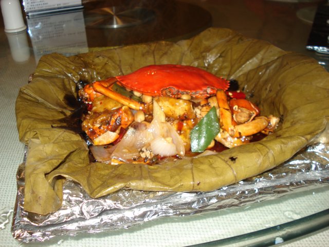 巴山羌族神仙蟹,158元,这道菜很噱头哦,包在锡纸里,点着火上来的,等火烧灭了后,服务员会把锡纸揭开,里头的蟹挺大个的,神仙蟹到底是神马蟹,不清楚诶。这道菜是辣的哦,不过我觉得辣度可以接受的啦。