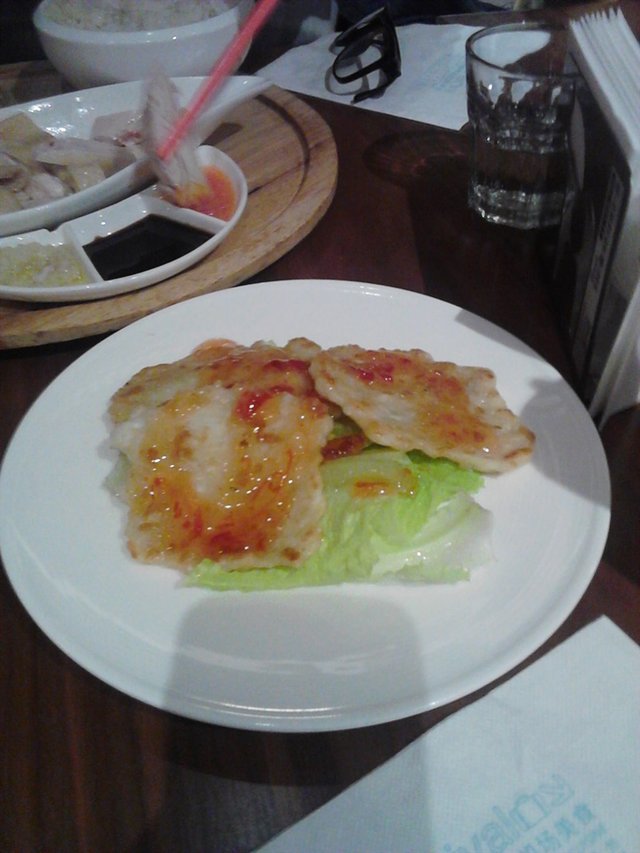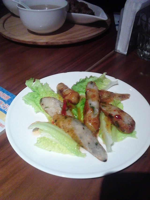 发记虾肉春卷,我们因为东西点得多,所以这个上来的时候,没人搞得清到底是啥,还当是香肠莱,虽说没吃出多少虾味,不过当它香肠吃的话,味道还是不错滴。