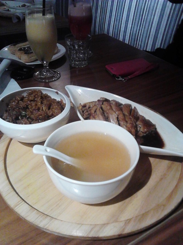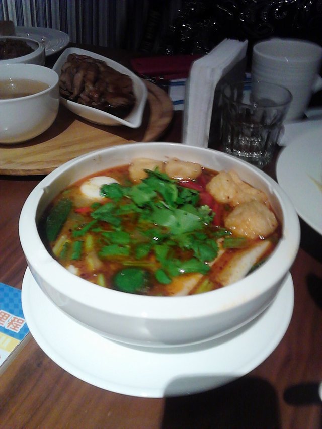 主食我点了樟宜头等舱牛肉汤河粉,39元,里头有不少牛肉片,处理得蛮嫩的。一个牛肉丸,吃起来挺弹牙。河粉的汤很鲜的说。