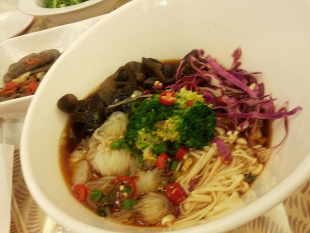麻辣素三拼 ,这个很好吃,有藕片 杏鲍菇和海带,杏鲍菇比较好吃~藕片也不错脆脆的~有些辣,不过可以承受~