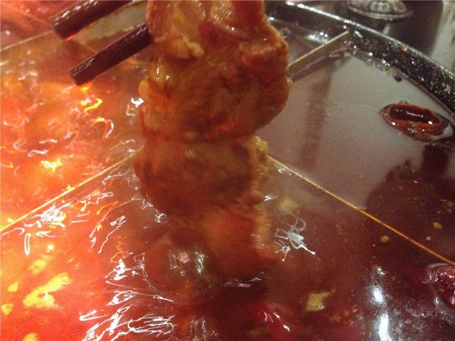 他们家独有的老肉片。刚开始我还以为是牛排牛仔骨一类的。这么大一片,要放在锅里整整煮20分钟才能吃。等啊等,终于可以吃了,没相当一点都不老!我还以为我吃一片就闷着了。居然吃完一片还想继续第二片!
